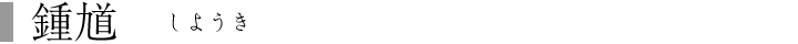 禅竹作 前 ワキ 終南山麓の人 シテ 老翁 後 ワキ 前に同じ シテ 鍾馗 地は 唐土 季は 秋 ワキ詞「是は唐終南山の麓に住居する者にて候。さても我奏聞申すべき事の候ふ間。唯今帝都に趣き候。 道行「終南山を立ち出でゝ。〳〵。野草の露を分け行けば。遠村に煙満ち。人屋しるき眺望の。海路遥かに過ぐれば。釣の小舟もかへる波。寄る程もなきながめかな。〳〵。 シテ詞「なふ〳〵あれなる旅人に申すべき事の候。 ワキ詞「何事にて候ふぞ。 シテ「我昔し誓願の子細あるにより。悪鬼を亡ぼし国土を守らんとの誓ひあり。君賢人をなし給はゞ。宮中に現じ奇瑞をなすべきとの。此事を奏してたび給へ。 ワキ「是は不思議の御事かな。さて〳〵御身は如何なる人ぞ。 シテ「今は何をか包むべき。我は鍾馗と云へる進士なるが。及第のみぎんに亡ぜし。其執心を翻へし。後世に猶望みあり。 ワキ「実に〳〵鍾馗の御事は。世に隠れなき進士なるが。其亡心にてましますか。 シテ「中々なりと夕暮の。 ワキ「物冷ましき。 シテ「折柄に。 地「草虫露に声しをれ。〳〵。尋ぬるに形なく。老松既に風絶えて。問へども松は答へず。実にや何事も。思ひ絶えなん色も香も。終には添はぬ花紅葉。いつをいつとか定めん。いつをかいつと定めん。 クセ「一生は風の前の雲。夢の間に散じ易く。三界は水の上の泡。光りの前に消えんとす。綺らん殿の内には。有為の悲しみを告げ。翡翠の帳の内には。有漏の願力有りとかや。栄花は是れ春の花。昨日は盛なれども。今日は衰ふわんりきの。秋の光り朝に増じ。夕べに減ずとか。春去り秋来つて。花散じ葉落つ。時移り気色変じて。楽しみ既に去つて。悲しび早く来れり。 シテ「朝顔の。花の上なる露よりも。 地「はかなき物はかげろふの。有るか無きかの心地して。世を秋風のうち靡き。群れ居る田鶴の音を鳴きて。四手の田長の一声も。誰が黄泉路をか知らすらん。あはれなりける人界を。いつかは離れはつべき。 ワキ詞「是は不思議の御事かな。急ぎ帝都に趣きつゝ。委しく奏聞申すべし。暫く待たせ給へとよ。 シテ「とても見みえし夢の内。誠の姿を顕はさんと。 ワキ「いふより早く。 シテ「気色変りて。 地「伝へ聞く仏在世の。〳〵。浄蔵浄眼の如くに。其高さ七多羅樹。虚空に上りては座せしめ。地に入つては火焰を放して。水を踏む事陸地の如くに。さら〳〵と走り去つて。形はさながら山彦の。〳〵。声ばかりして失せにけり。〳〵。(中入) ワキ歌「苔のむしろに法をのべ。〳〵。さも冷ましき山陰の。嵐と共に声立てゝ。此妙経を読誦する。〳〵。 後ジテ「鬼神に横道なしといふに。何ぞみだりに騒がしく。汝知らずや我心。国土を守る誓ひあり。 地「宝剣光り冷ましく。日月影おろそかに。松嵐梢を払ふが如く。悪鬼の乱れ恐れ去つて。実にも鍾馗の精霊たり。 ロンギ地「有難の御事や。そも君道を守らんの。其誓願の御誓ひ。如何なる謂なるらん。 シテ「鍾馗及第のみぎんにて。我と亡ぜし悪心を。翻へす一念。発起菩提心なるべし。 地「実に誠ある誓ひとて。国土をしづめ別きて実に。 シテ「禁裏雲井の楼閣の。 地「こゝやかしこに遍満し。 シテ「あるひは玉殿。 地「廊下の下。御階の下までも。〳〵。剣をひそめて忍び〳〵に。求むれば案の如く。鬼神は通力失せ。顕はれ出づれば忽ちに。ずた〳〵に切り放して。まのあたりなる其勢。唯此剣の威光となつて。天にかゝやき地に普く。治まる国土となる事治まる国土となる事も。実に有難き誓ひかな。〳〵。 底本:国立国会図書館デジタルコレクション『謡曲評釈 第八輯』大和田建樹 著