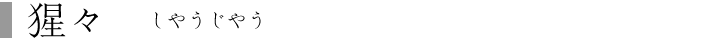 世阿弥作 ワキ かうふう シテ 猩々 地は 唐土 季は 秋 ワキ詞「是は唐かね金山の麓。揚子の里にかうふうと申す民にて候。さても我親に孝あるにより。或夜不思議の夢を見る。揚子の市に出でゝ酒を売るならば。富貴の身となるべしと。教へのまゝになす業の。時去り時来りけるにや。次第々々に富貴の身となりて候。又こゝに不思議なる事の候。市毎に来り酒を飲む者の候ふが。盃の数は重なれども。面色は更に変はらず候ふ程に。余りに不審に存じ。名を尋ねて候へば。海中に住む猩々とかや申し候ふ程に。今日は潯陽の江に出でゝ。彼猩々を待たばやと存じ候。 歌「潯陽の江の辺にて。〳〵。菊をたゝへて夜もすがら。月の前にも友待つや。又傾くる盃の。影をたゝへて待ち居たり。〳〵。 地「老せぬや。〳〵。薬の名をも菊の水。盃も浮かび出でゝ。友に逢ふぞ嬉しき。此友に逢ふぞうれしき。 シテ「御酒と聞く。 地「御酒と聞く。名も理や秋風の。 シテ「吹けども〳〵。 地「さらに身には寒からじ。 シテ「理や白菊の。 地「理や白菊の。着せ綿を温めて。酒をいざや汲まうよ。 シテ「客人も御覧ずらん。 地「月星は隈もなし。 シテ「所は潯陽の。 地「江の内の酒盛。 シテ「猩々舞を舞はうよ。 地「蘆の葉の笛を吹き。波の鼓どうと打ち。 シテ「声澄み渡る浦風の。 地「秋の調べや残るらん。(中の舞) シテ「有難や御身心すなほなるにより。此壺に泉をたゝへ。唯今返し与ふるなり。よも尽きじ。 地「よも尽きじ。万代までの竹の葉の酒。汲めども尽きず飲めども変はらぬ。秋の夜の盃。影も傾く入江に枯れ立つ。足もとはよろ〳〵と。弱り臥したる枕の夢の。覚むると思へば泉は其まま。尽きせぬ宿こそめでたけれ。 底本:国立国会図書館デジタルコレクション『謡曲評釈 第八輯』大和田建樹 著