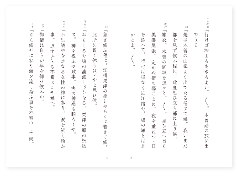 観世小次郎作 前 ワキ 旅僧 シテ 里女 後 ワキ 前に同じ シテ 巴 地は 近江 季は 正月 ワキ次第「行けば深山もあさもよい。〳〵。木曽路の旅に出でうよ。 詞「是は木曽の山家より出でたる僧にて候。我いまだ都を見ず候ふ程に。此度思ひ立ち都に上り候。 道行「旅衣。木曽の御坂を遥々と。〳〵。思ひ立つ日も美濃尾張。定めぬ宿の暮ごとに。夜を重ねつゝ日を添へて。行けば程なく近江路や。鳰の海とは是かとよ。〳〵。 詞「急ぎ候ふ程に。江州粟津の原とやらんに着きて候。此所に暫く休らはゞやと思ひ候。 シテサシ「おもしろや鳰の浦波しづかなる。粟津の原の松陰に。神を祝ふや政事。実に神感も頼もしや。 ワキ詞「不思議やな是なる女性の神に参り。涙を流し給ふ事。返す〴〵も不審にこそ候へ。 シテ「御僧は自らが事を仰せ候ふか。 ワキ「さん候神に参り涙を流し給ふ事を不審申して候。 シテ「おろかと不審し給ふや。伝へ聞く行教和尚は。宇佐八幡に詣で給ひ一首の歌に曰く。何事のおはしますとは知らねども。 詞「忝なさに涙こぼるゝと。かやうに詠じ給ひしかば。神もあはれとや思しめされけん。御衣の袂に御影をうつし。それより都男山に誓ひを示し給ひ。国土安全を守り給ふ。おろかと不審し給ふぞや。 ワキ「やさしやな女性なれども此里の。都に近き住居とて。名にし負ひたるやさしさよ。 シテ詞「さて〳〵御僧の住み給ふ。在所は何処の国やらん。 ワキ「是は信濃の国木曽の山家の者にて候。 シテ「木曽の山家の人ならば。粟津が原の神の御名を。問はずは如何で知り給ふべき。是こそ御身の住み給ふ。木曽義仲の御在所。同じく神と祝はれ給ふ。拝み給へや旅人よ。 ワキ「不思議やさては義仲の。神とあらはれ此所に。いまし給ふは有難さよと。神前に向ひ手を合はせ。 地「古への。是こそ君よ名は今も。〳〵。有明月の義仲の。仏と現じ神となり。世を守り給へる。誓ひぞ有難かりける。旅人も一樹の陰。他生の縁とおぼしめし。此松が根に旅居し。夜もすがら経を読誦して。五衰をなぐさめ給ふべし。有難き値遇かな。実に有難き値偶かな。さる程に。暮れて行く日も山の端に。入相の鐘の音の。浦わの波に響きつゝ。いづれも物すごきをりふしに。我も亡者の来りたり。其名をいづれとも。知らずは此里人に。問はせ給へと夕暮の。草のはつかに入りにけり。〳〵。(中入) ワキ歌「露をかたしく草枕。〳〵。日も暮れ夜にもなりしかば。粟津が原のあはれ世の。亡き影いざや弔はん。〳〵。 後ジテ「落花空しきを知る。流水心なうしておのづから。澄める心はたらちねの。 地「罪も報いも因果の苦しみ。今は浮まん御法の功力に。草木国土も成仏なれば。況んや生ある直道の弔ひ。彼是いづれも頼もしや。頼もしやあら有難や。 ワキ「不思議やな粟津が原の草枕を。見れば有りつる女性なるが。甲胄を帯する不思議さよ。 シテ詞「なか〳〵に巴と言ひし女武者。女とて御最期に。召し具せざりし其恨み。 ワキ「執心のこつて今までも。 シテ「君辺に仕へ申せども。 ワキ「恨みはなほも。 シテ「荒磯海の。 地「粟津の汀にて。波の討死すゑまでも。御供申すべかりしを。女とて御最期に。捨てられ参らせし恨めしや。身は恩のため。命は義による理。誰か白真弓取の身の。最期に臨んで。功名を惜しまぬ者やある。 クセ「さても義仲の。信濃を出でさせ給ひしは。五万余騎の御勢。鑣をならべ攻め上る。礪波山や倶利伽羅。志保の合戦に於ても。分捕高名の其数。誰に面を越され。誰におとる振舞の。なき世がたりに。名ををし思ふ心かな。 シテ「されども時刻の到来。 地「運槻弓の引く方も。渚に寄する粟津野の。草の露霜と消え給ふ。所はこゝぞ御僧達。同所の人なれば。順縁に弔はせ給へや。 ロンギ地「さて此原の合戦にて。討たれ給ひし義仲の。最期を語りおはしませ。 シテ「頃は正月の空なれば。 地「雪はむら消えに残るを。たゞ通路と汀をさして。駒をしるべに落ち給ふが。薄氷の深田に駆け込み。弓手も馬手も鐙は沈んで。下り立たん便りもなくて。手綱にすがつて鞭を打てども。引く方も渚の浜なり。前後を忘じて扣へ給へり。こは如何にあさましや。かゝりし処に。自ら駆けよせて見奉れば。重手は負ひ給ひぬ。乗替に召させ参らせ。此松原に御供し。はや御自害候へ。巴も共と申せば。其時義仲の仰せには。汝は女なり。忍ぶ便りも有るべし。是なる守小袖を。木曽に届けよ此旨を。背かば主従。三世の契り絶えはて。永く不興とのたまへば。巴はともかくも。涙にむせぶばかりなり。 地「かくて御前を立ち上り。見れば敵の大勢。あれは巴か女武者。余すな漏らすなと。敵手繁くかゝれば。今は引くとも遁るまじ。いで一軍うれしやと。巴少しも騒がず。わざと敵を近くなさんと。長刀引きそばめ。少し恐るゝけしきなれば。敵は得たりと切つて懸かれば。長刀柄ながくおつ取りのべて。四方を払ふ八方払ひ。一所に当るを木の葉返し。嵐も落つるや花の滝波。
