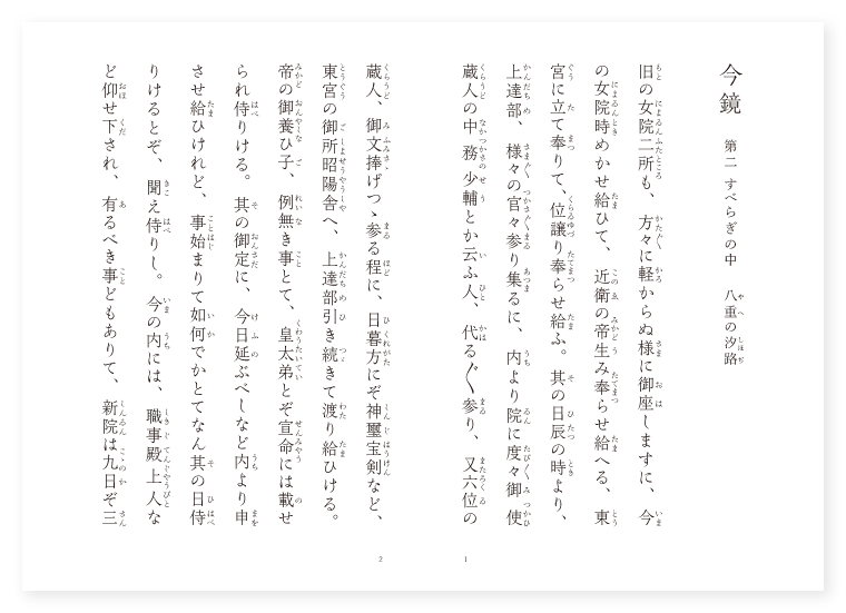 〔口訳〕八月十日新院御到着の由、讃岐国からの報が著いた。松山にお出になつたが、国司が直島といふ所に御所を御造営したので、其処へお遷り遊ばした。四方に築垣を築き、門一つ、日に三度の供御を奉る外は、訪ふ人もない淋しい鄙の御住居であつた。
